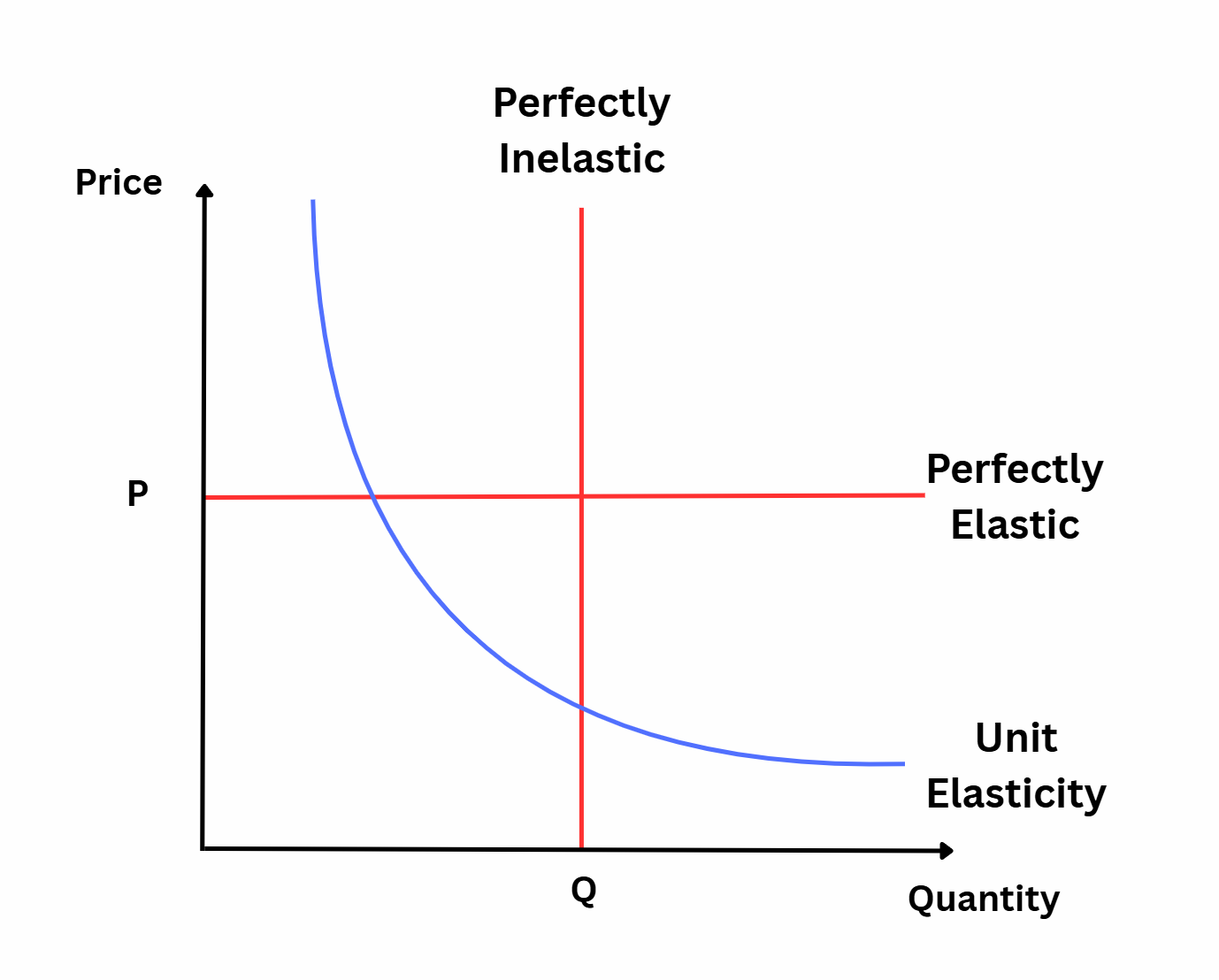 | Unit Elastic | Exactly 1 | Quantity changes in the same proportion as price | Moderate curve |