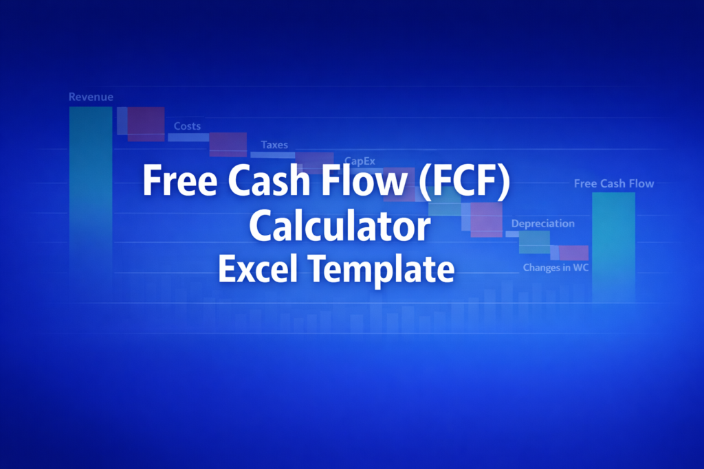 This FCF Calculator computes single-period free cash flow from income statement inputs. The DCF Calculator takes projected FCFs as inputs and discounts them to compute enterprise value and implied share price. Use this template first to derive your FCF figures, then use the DCF template for multi-year valuation.