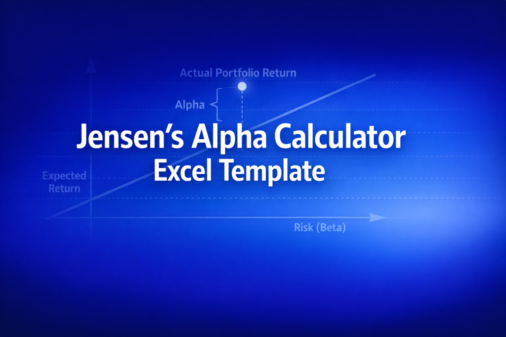 Professional Excel template to calculate Jensen’s Alpha, measuring portfolio performance vs CAPM risk-adjusted expectations.