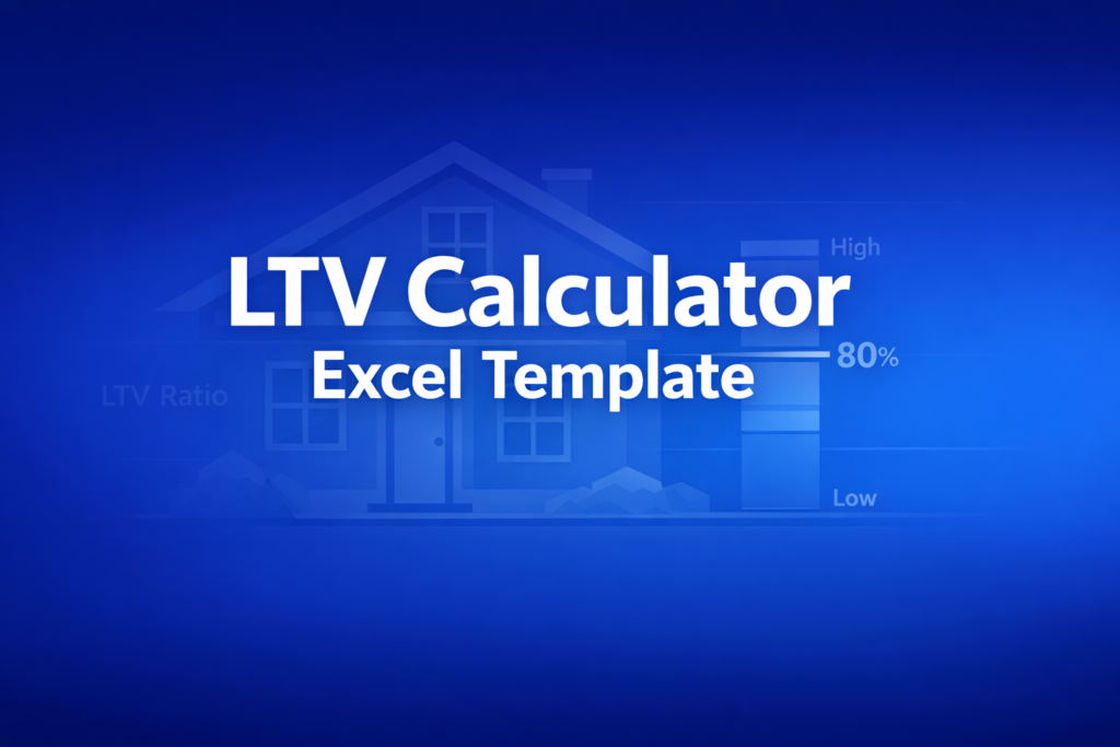 Professional LTV Calculator Excel template with live formulas. Calculate loan-to-value ratio, equity amount, and LTV risk rating instantly.